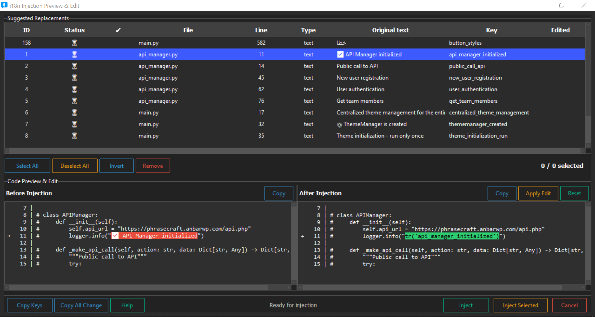 Translate, generate i18n, and inject safely — even without existing localization.