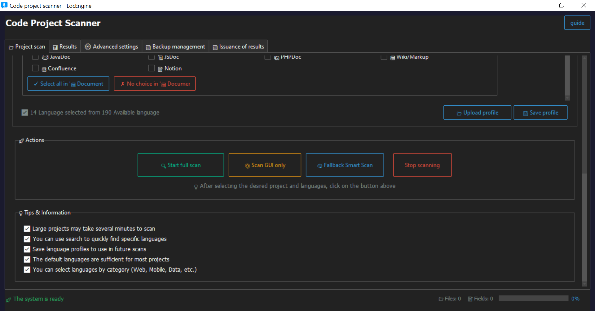 • Full Scan for deep project coverage